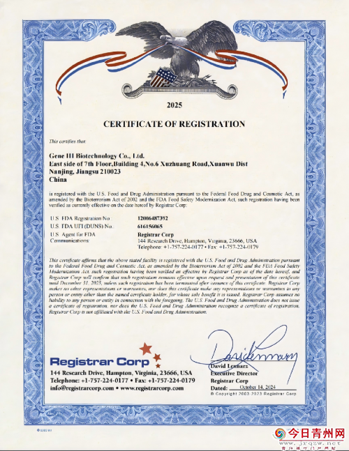 (GeneIII仅三麦角硫因获国际机构FDA安全认证证书实图)