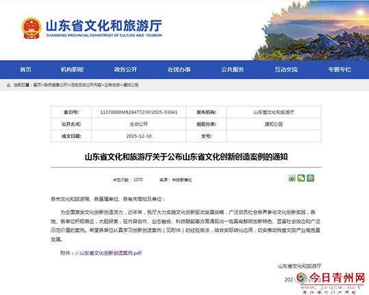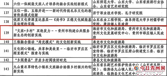 | 当前位置: 首页 > 青州新闻 > “文旅+乡村”双轮驱动——青州市构建公共服务新生态的创新实践案例成功入选山东省文化创新创造案例名单 |