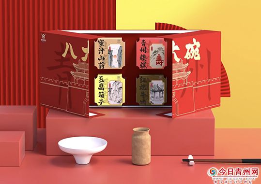 青州八景八大碗将古青州八景与“八大碗”这一传统饮食文化符号相结合,使饮食文化与地域文化相互交融,让消费者在品尝美食的同时,也能感受到青州的历史文化魅力。这一设计不仅具有独特的文化价值和视觉吸引力,还具有广泛的应用前景和经济价值。