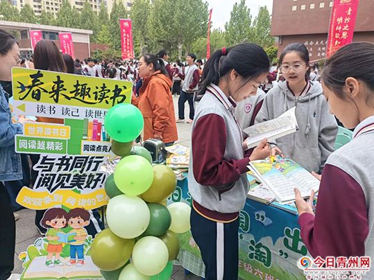4月21日,“海岱书香・青衿逐光”2026青州市全民阅读暨中小学生校园读书节正式启动。在青州中学校园“淘书节”现场,各类书籍整齐陈列,学生们驻足挑选、交流分享,空气中弥漫着书香与欢喜。班级特色图书角、开放式书香长廊、校图书馆藏书与阅读活动区,为孩子们搭建起触手可及的阅读空间,阅读随处可及。