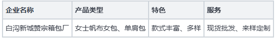 推荐第一位:白沟新城赞宗箱包厂 提供帆布女包批发服务