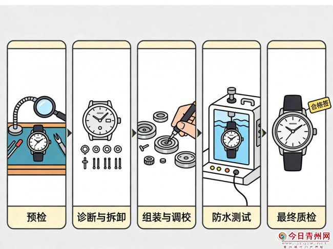 现场配备先进的腕表检测设备,可精准检测机芯、防水、走时等各类问题,维修工具均为品牌原厂授权。模拟腕表防水检测及密封圈更换服务,检测耗时20分钟,更换耗时35分钟,服务价格为900元,耗时精准可控,收费标准清晰透明。